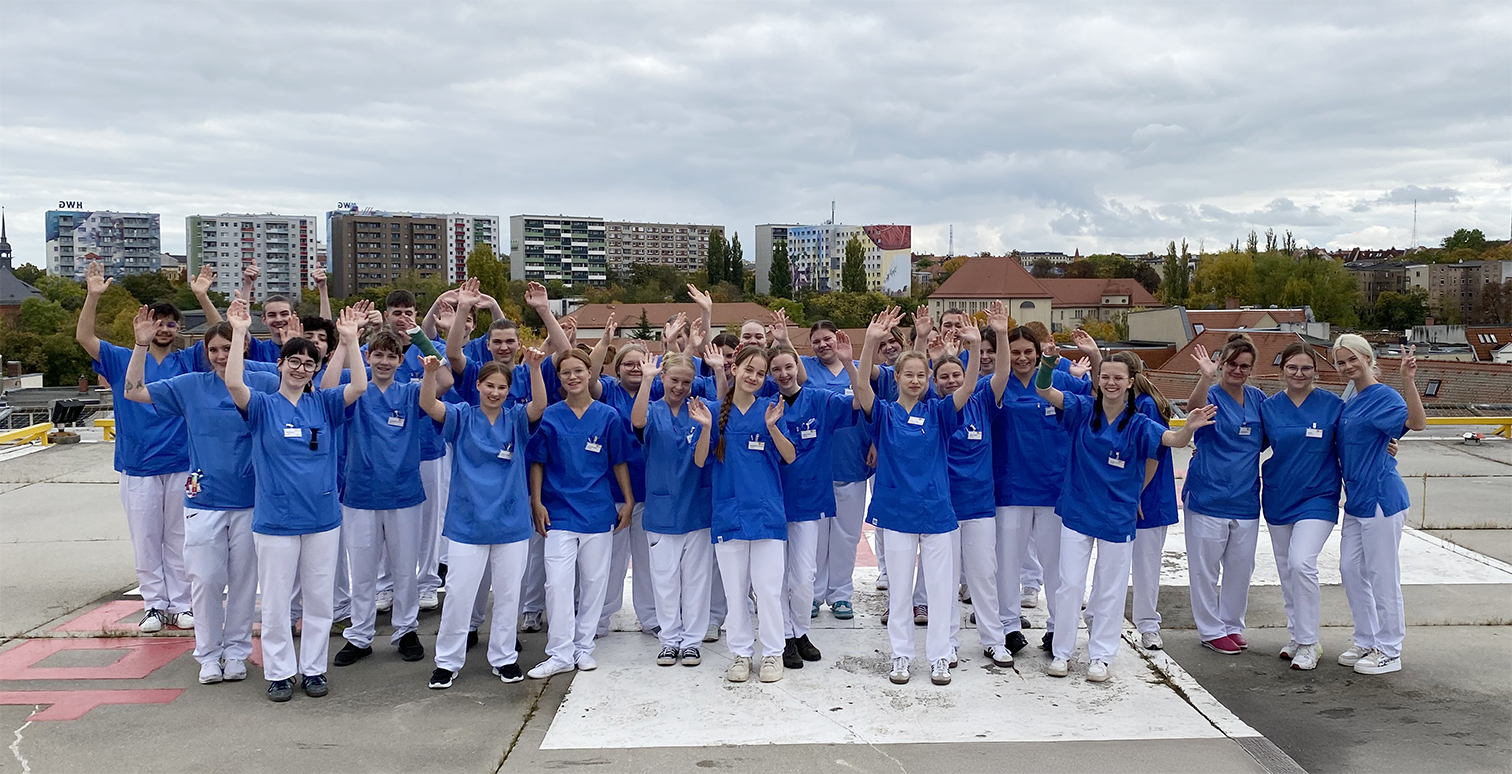 Das „Feriencamp im Krankenhaus“ des Krankenhauses St. Elisabeth und St. Barbara Halle (Saale) richtet sich an Lernende ab der 9. Klasse. In dem eigenständig von Auszubildenden organisierten zweitägigen Programm erhalten die Schülerinnen und Schüler einen authentischen Einblick in die facettenreiche und verantwortungsvolle Tätigkeit der Pflegeberufe. In praktischen Übungszirkeln lernen die Teilnehmenden Wiederbelebungsmaßnahmen, moderne Medizintechnik und den behutsamen Umgang mit Neugeborenen kennen, begleiten Mitarbeitende auf Station und erleben praxisnah, wie vielfältig und sinnstiftend die Arbeit im Krankenhaus ist. In der ersten Woche der Herbstferien nahmen 31 Lernende am zweiten „Feriencamp im Krankenhaus“ teil und bestätigen damit den Erfolg des Formats.